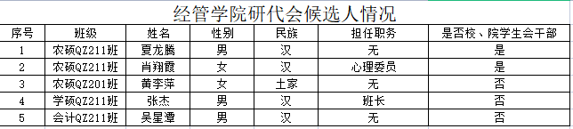 学院将于2022年6月上旬召开学生代表大会、研究生代表大会,根据学校工作安排,依据《中华全国学生联合会章程》、《湖北省学生联合会章程》、《新葡萄官网AMG学生会章程》、《新葡萄官网AMG研究生会章程》,现将新葡萄官网AMG2022年学生代表大会、研究生代表大会候选人情况进行公示。公示期为2022年5月30日至2022年6月1日,公示期内如对候选人情况有异议,请联系新葡萄官网AMG团委杨老师反映情况(办公电话:0716-8060920)。